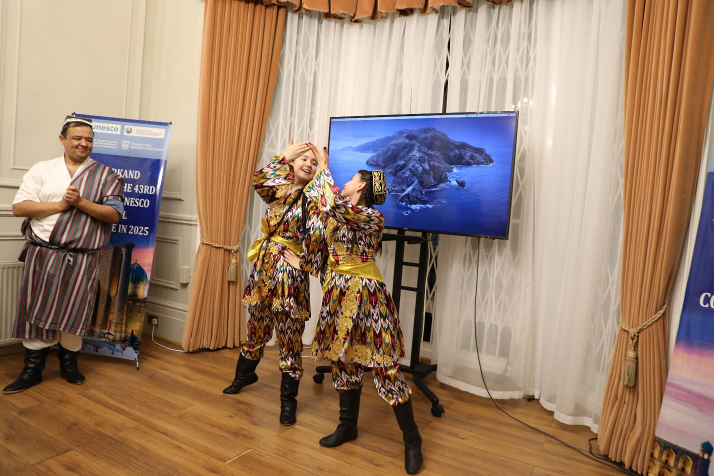 After that, a video about the UNESCO World Heritage Sites in Uzbekistan was shown. It should be noted that special attention was paid to the historical significance of the first UNESCO summit outside Paris in 2025 in Samarkand and the demonstration of Uzbekistan's rich cultural and tourism potential. During the event, the artistic team of the Tashkent State University of Economics gave unforgettable impressions to the participants of exhibitions and artistic performances aimed at demonstrating the rich cultural and tourism potential of Uzbekistan.