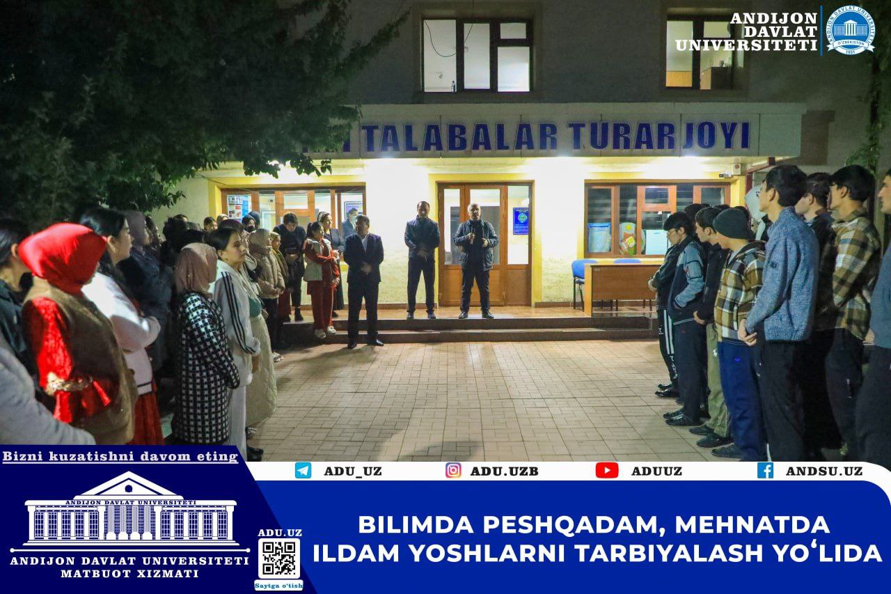 About 18,724 students (from 12 regions of Uzbekistan and CIS countries) study at Andijan State University, including 6,949 full-time, 11,170 part-time, 271 distance learning, 121 in a joint program, and 210 in a master's degree program.