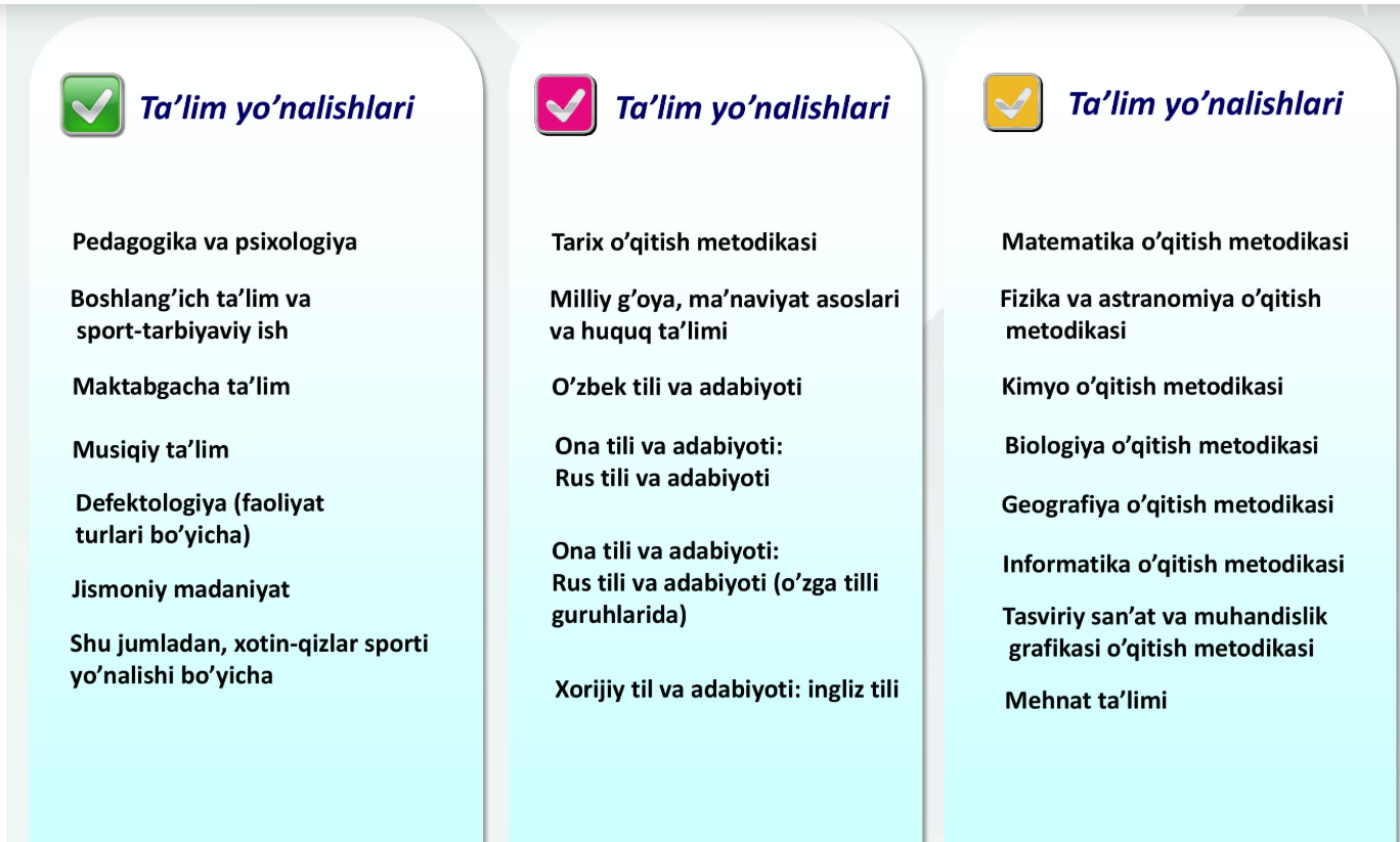 В настоящее время в Чирчикском государственном педагогическом университет действуют следующие факультеты: