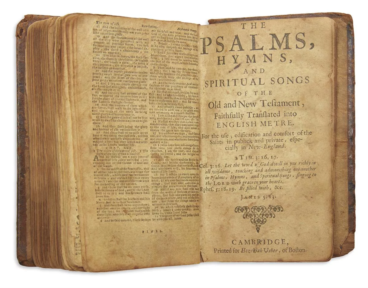 Массачусетский Псалом был напечатан в 1640 году и был первой книгой, напечатанной в Британии в Северной Америке. В 1947 году копия Книги Псалмов Персидского залива - 11 из них известны - побила мировой рекорд по самой дорогой печатной книге, когда копия была продана на аукционе за 151 доллар (около 000 миллионов долларов сегодня). В 1,8 года он снова вышел на аукцион, побив свой собственный рекорд, когда миллиардер Дэвид Рубенштейн купил его за 2013 миллион долларов.
