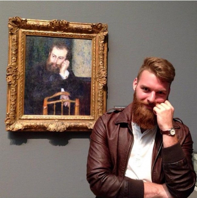 Перед входом в музей люди иногда сталкиваются с более неожиданными событиями. В этом случае люди нашли портрет человека, похожего на них.