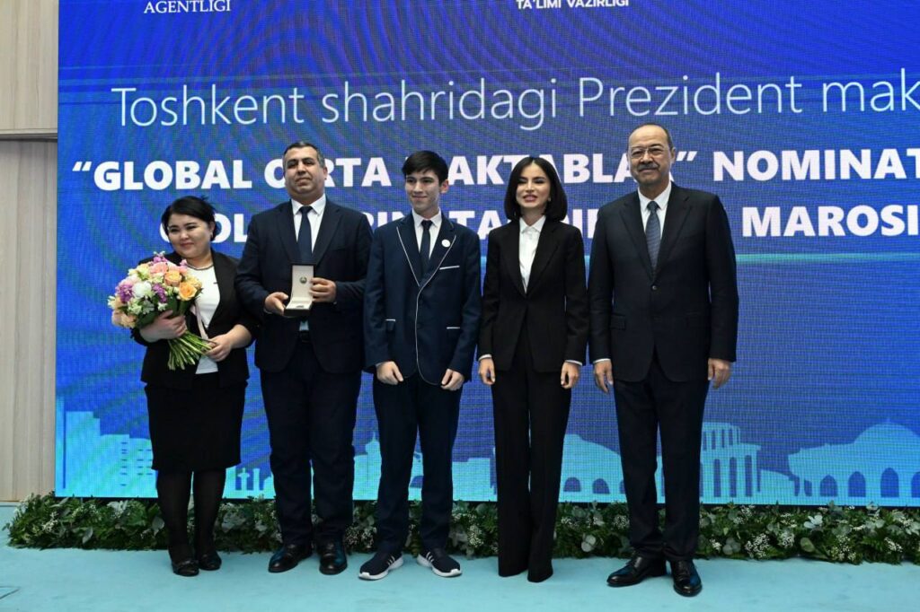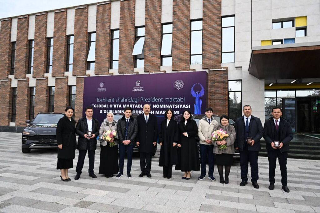 Учащиеся Президентской школы города Ташкента Пахлавон Гуломов, Асилбек Ашрапов и их наставник Сохибжон Азизов, победители конкурса "Zayed Sustainability Prize" в Абу-Даби, получили автомобиль.