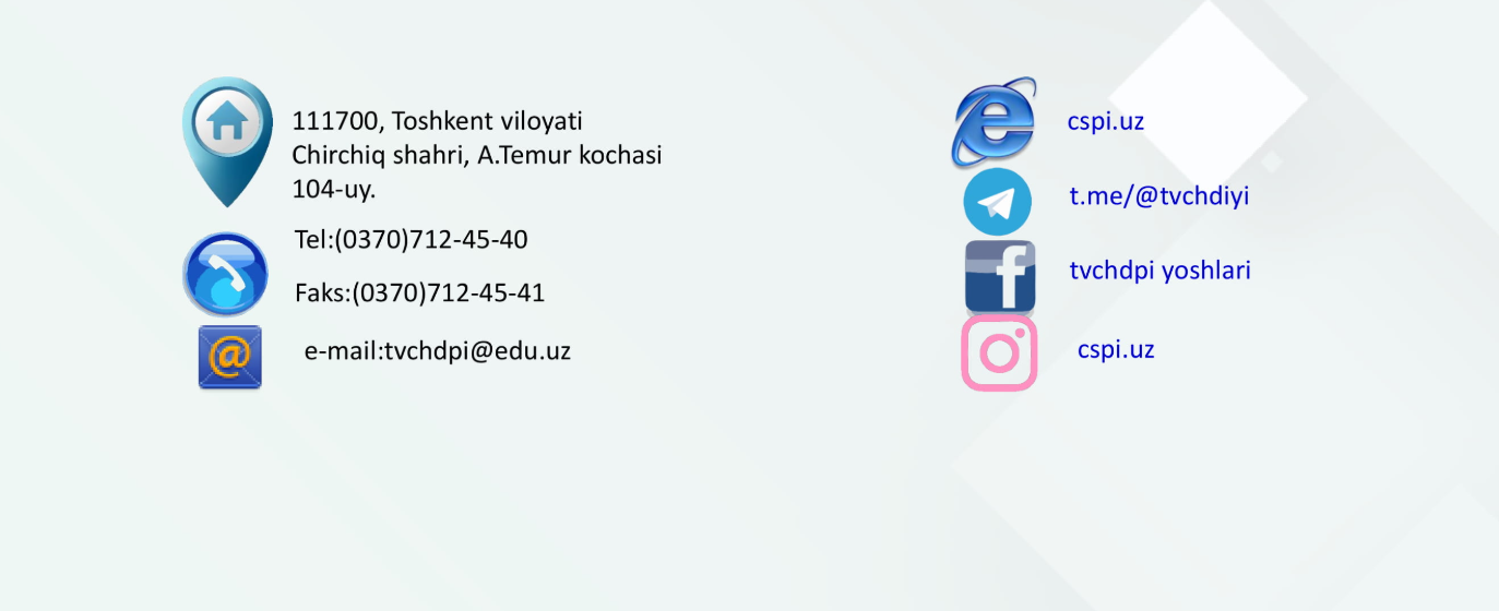 Мазкур университет юзасидан сизда савол ва таклифлар туғилган бўлса, қуйидаги манзилга ва рақамларга мурожаат қилишингиз мумкин:
