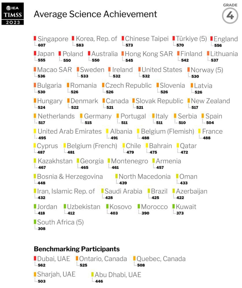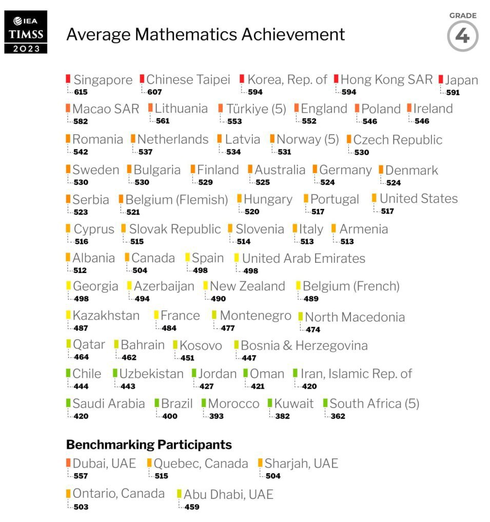 Ҳозиргина таълимдаги ютуқларни баҳолаш халқаро ассоциацияси (ИЭА) томонидан TIMSS 2023 халқаро баҳолаш дастури натижалари эълон қилинди.